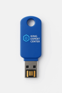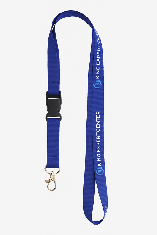 Deze praktische en representatieve lanyard heeft een diepblauw koord met het King Expert Center-logo als opdruk. Ideaal om dagelijks te gebruiken voor sleutels, toegangspassen en badges, maar ook om een van onze fictieve USB-sticks veilig en altijd bij je te dragen.